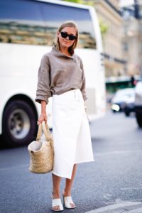 Para un toque mucho más working girl, el mejor tip de estilo (de nuevo, visto en Dinamarca) es aliar la falda con una sobria blazer masculina. Unos salones de tacón media y un bolso cruzado conforman un outfit perfecto para ir a la oficina en verano.