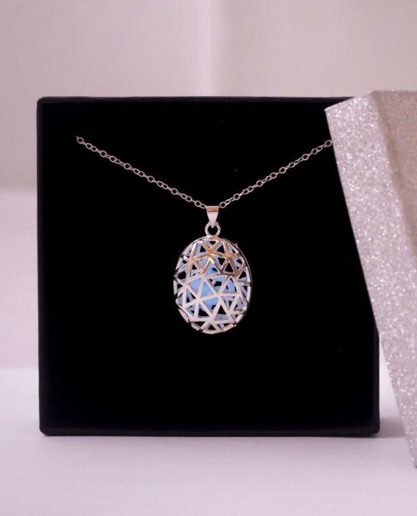 Collar utilizado en Cromoterapia, también conocida como Colorterapia, está fabricado en aleación de metal, con piedra orgánica Bioluminiscente en forma de corazón que retiene la luz por 2 horas.